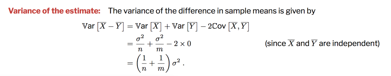 What is the variance of estimate for independent sample t-tests?