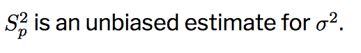 What are two properties of the pooled sample variance?