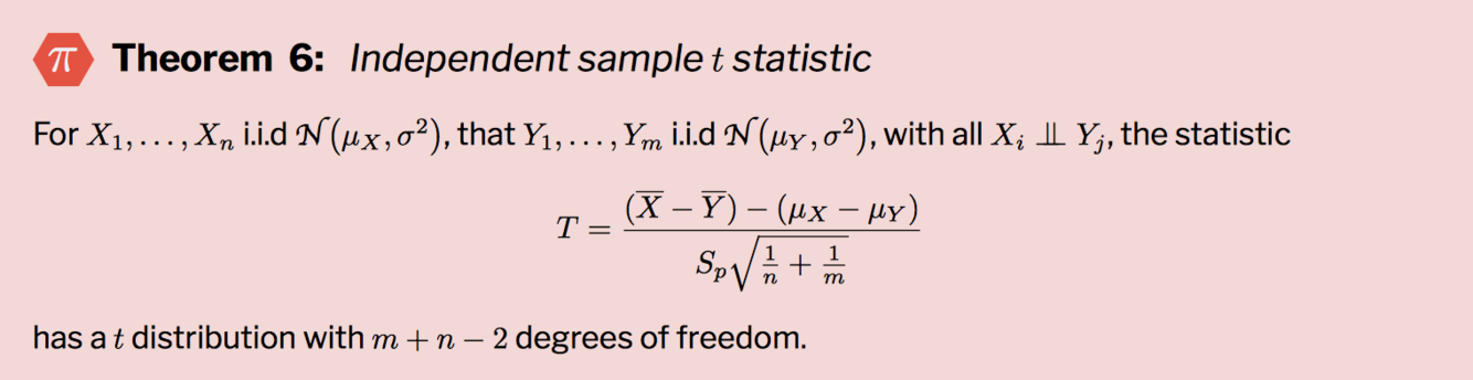 What is the theorem about the independent sample t statistic?