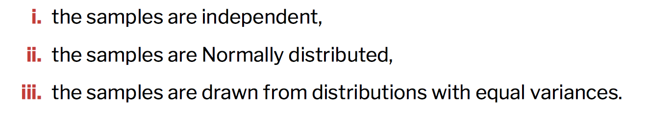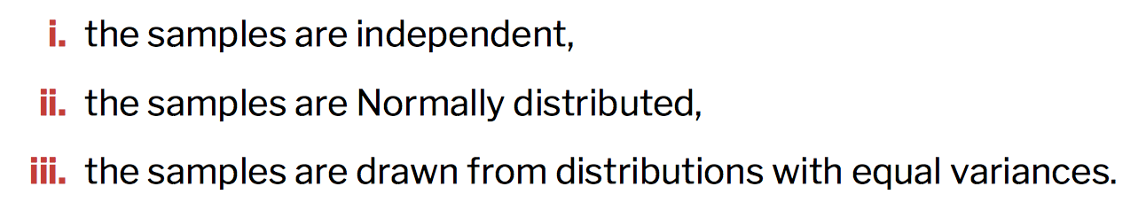 What are three assumptions to do the independent sample t-test?