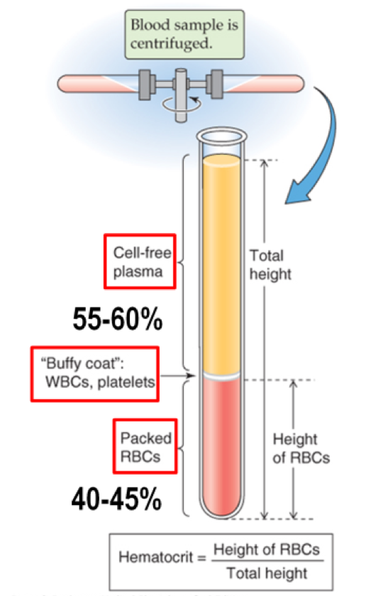 Hématocrite est la fraction exprimée en % du volume sanguin occupé par les globules rouges.