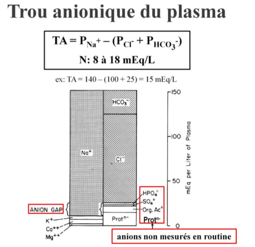 Le trou anionique du plasma signifie qu’il y a plus d’anions indosés que de cations.