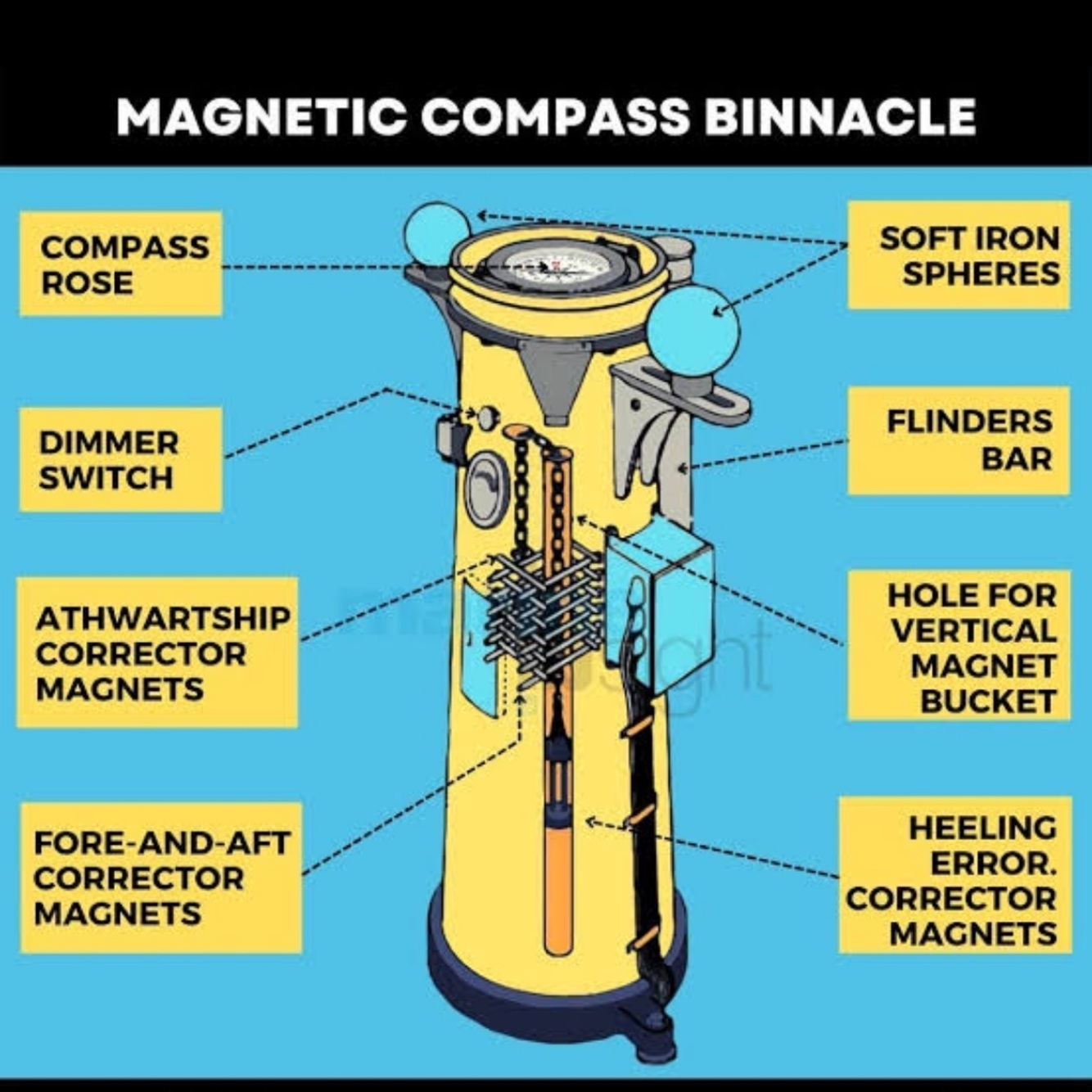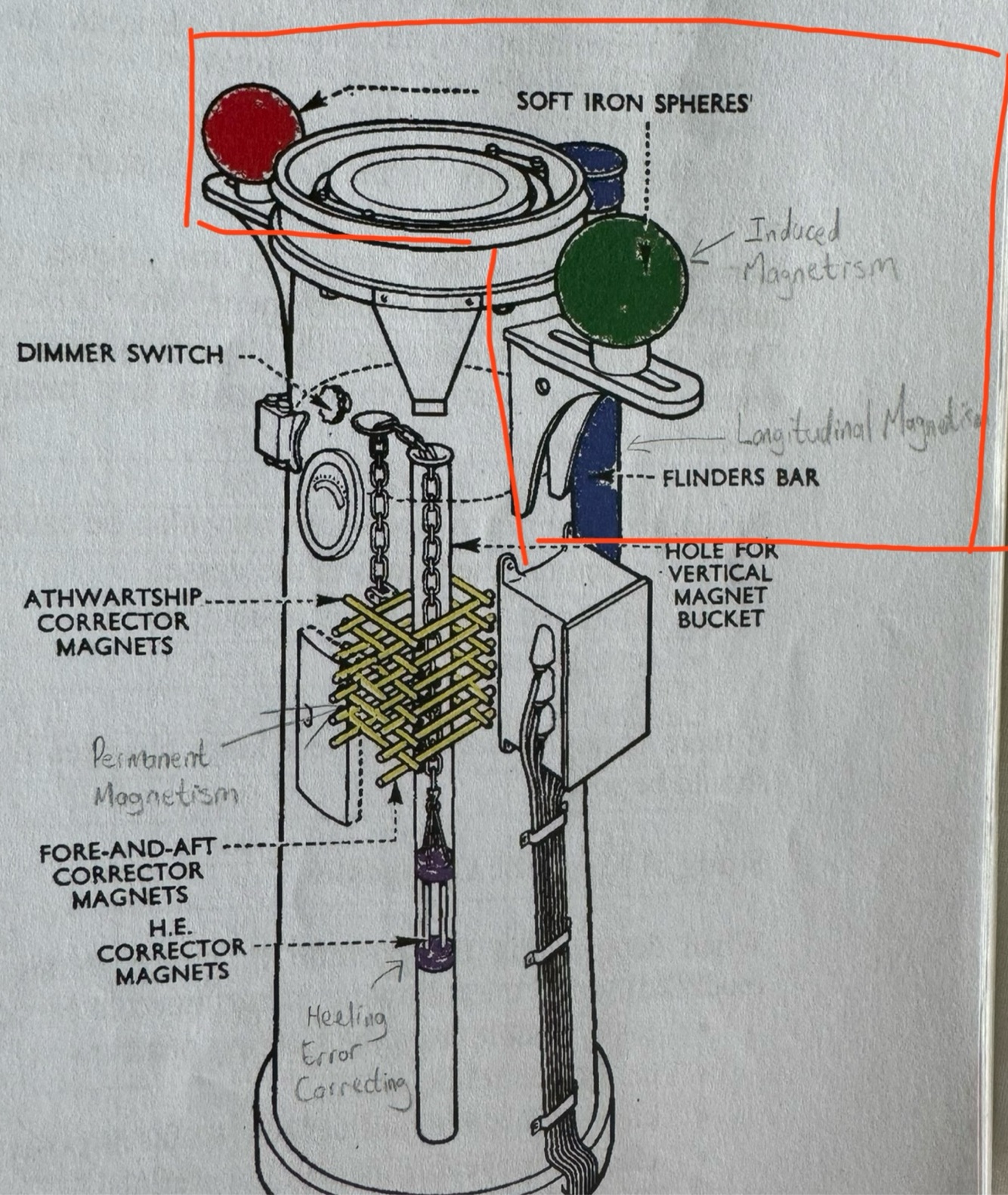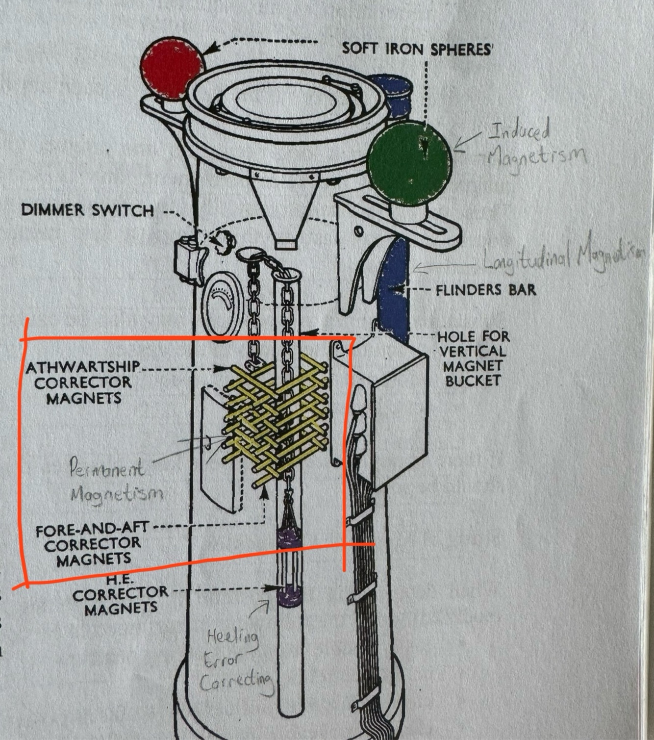 eg. Ship travelling N for for several days may retain some N + S magnetism