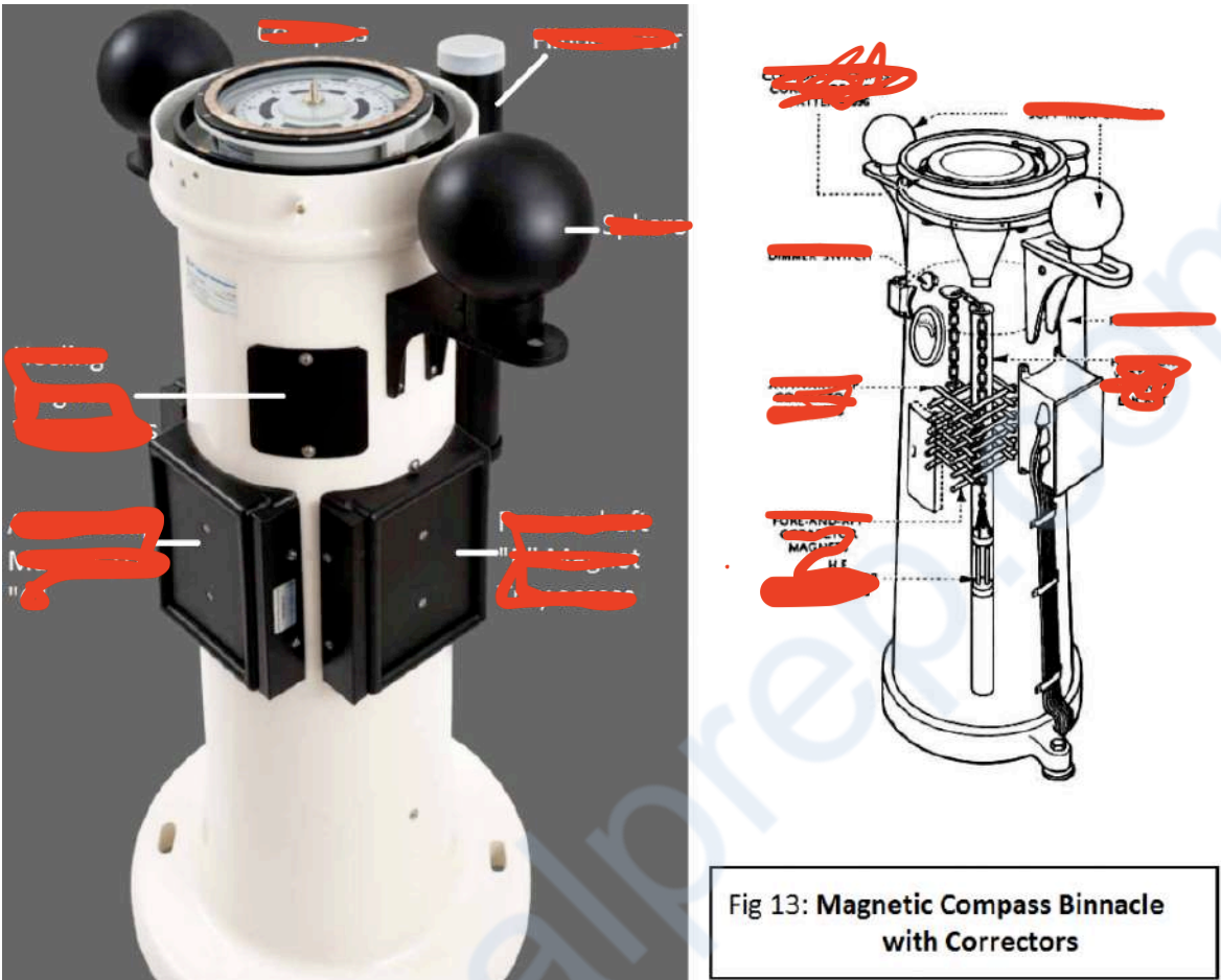 magnets and soft-iron Spheres at the compass binnacle, the ship’s residual Deviation is found