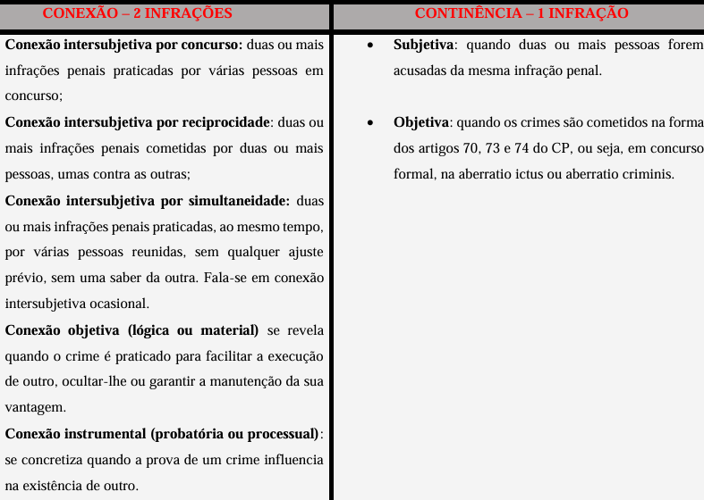 De acordo com a doutrina, a conexão tem como uma de suas modalidades a conexão intersubjetiva por reciprocidade, hipótese na qual as infrações são praticadas por diversas pessoas, umas contra as outras. O crime de rixa é um exemplo dessa modalidade de conexão, tendo em vista que os envolvidos, desafiante e desafiado, acabam sofrendo e provocando lesões corporais recíprocas.