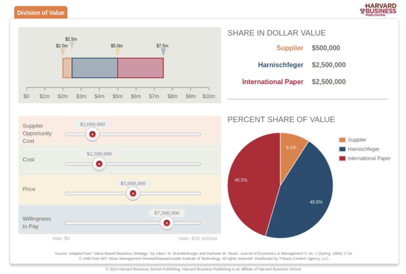 → The price that emerges from the bargaining may fall anywhere between $2.5 million, Harnischfeger’s cost, and $7.5 million, International Paper’s willingness to pay
