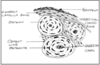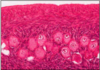 pale green cells - outermost layer, predominate at first half of menstrual cycle