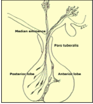 ANTERIOR (TROPHIC) - epithelial origin. roof of primitive gut. adheres @ anterior border of posterior pituitary and surrounds stalk (pars tuberalis)