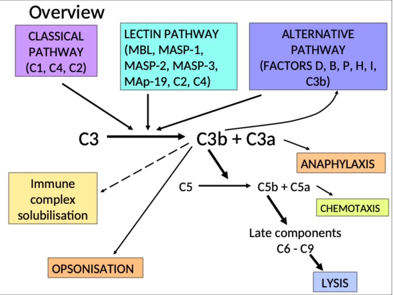 Classical and lectin pathway are similar as they result in the same C3 convertase which will act on C3. the alternative pathway creates a different C3 convertase