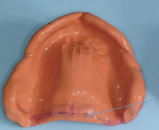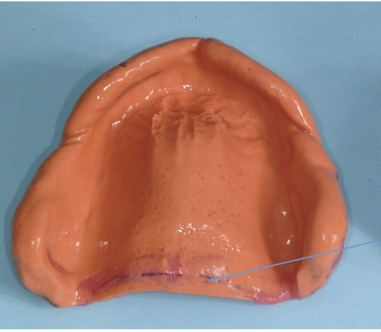 Mark a second post dam anterior to this , to modify the denture later if needed by cutting a second post dam