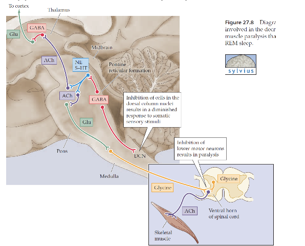 Tell me about the suppression of somatosensory response and muscle relaxation during REM sleep