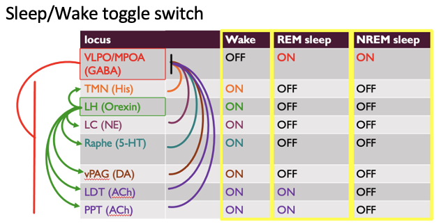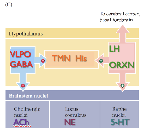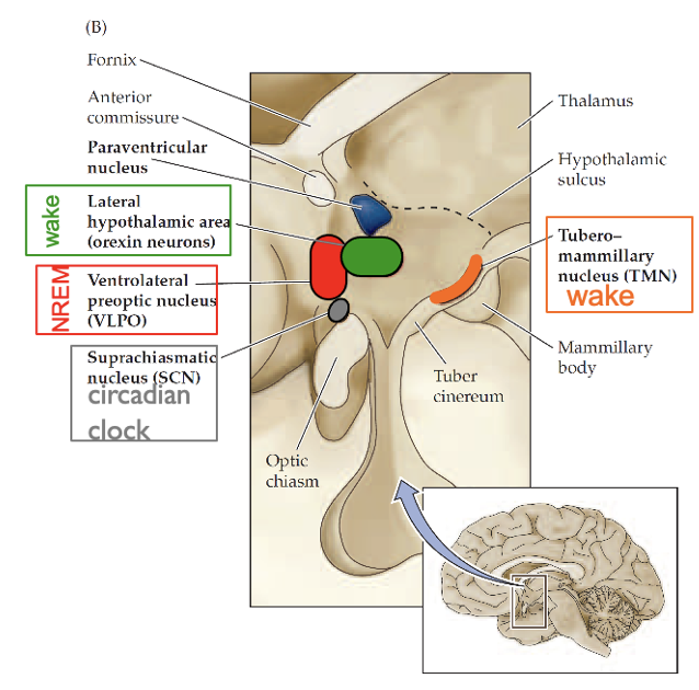 Label the following areas/ nuclei and what part of sleep they are involved with