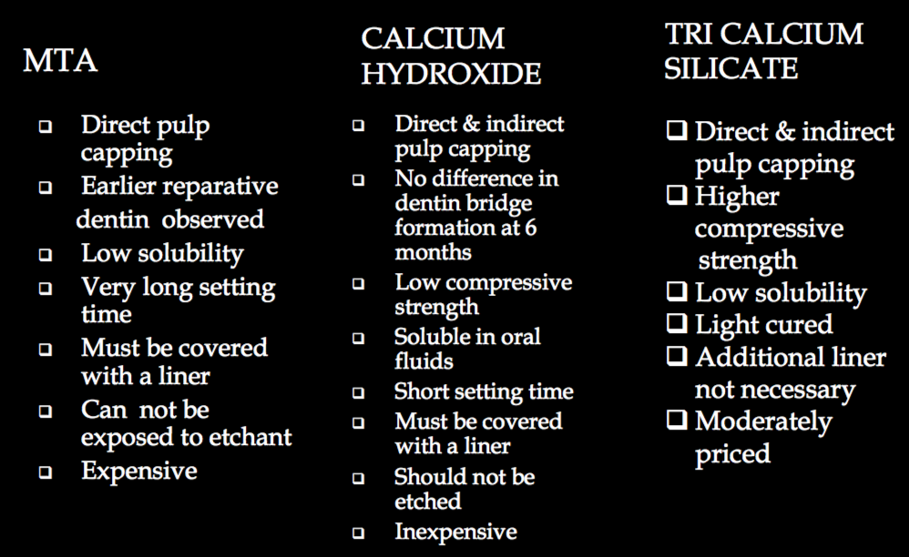 “bioactive” and “dentinogenic” - used in direct pulp capping procedures
