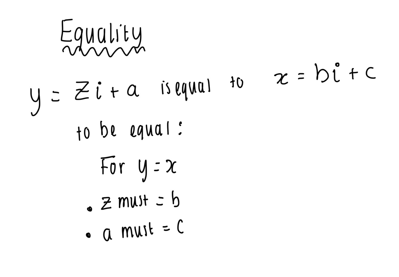 How is the equality different for complex numbers?