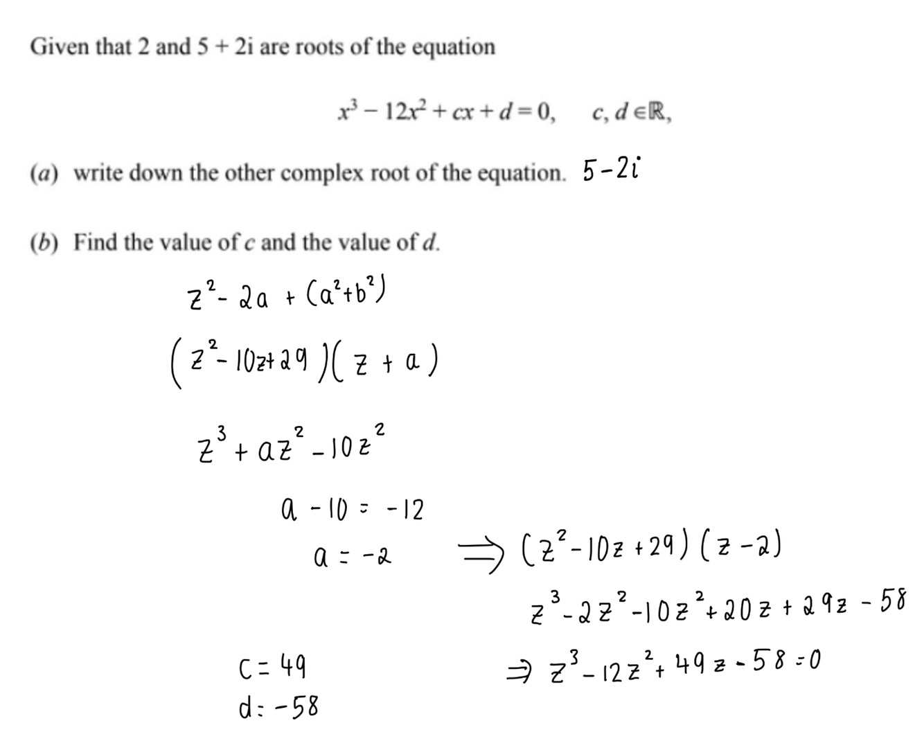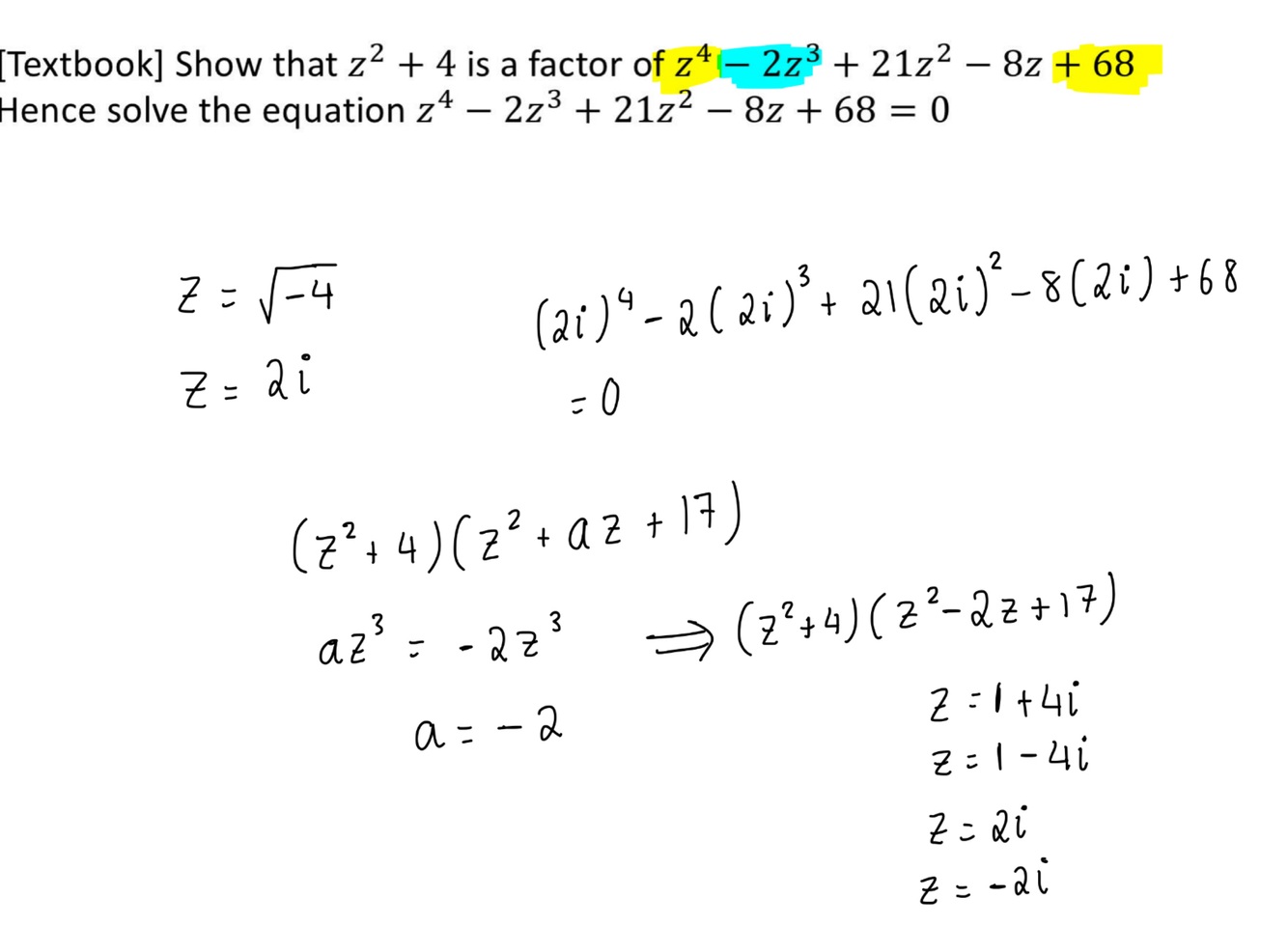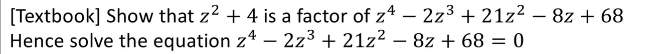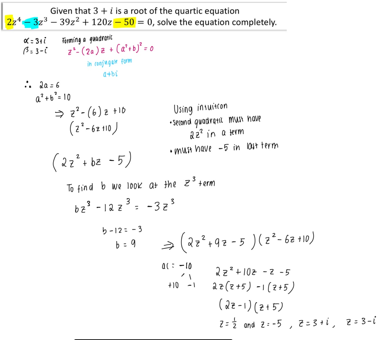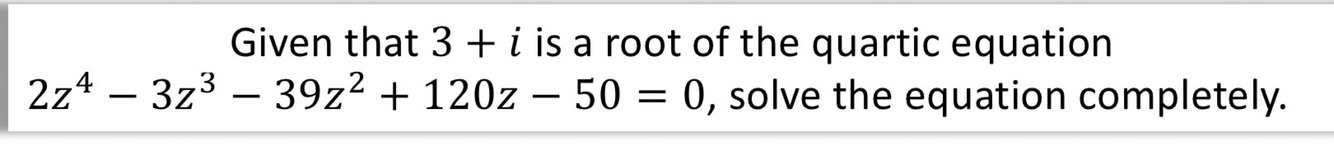 how would you solve a cubic/ quartic equation given one complex root?