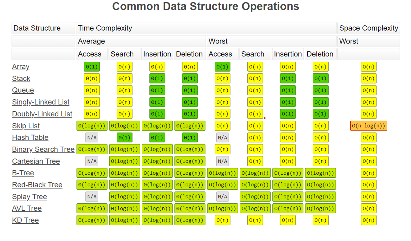 time complexity for Arrays