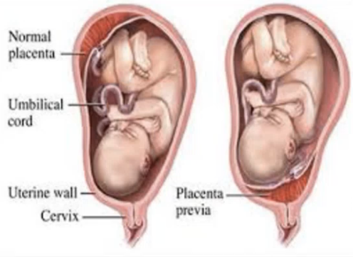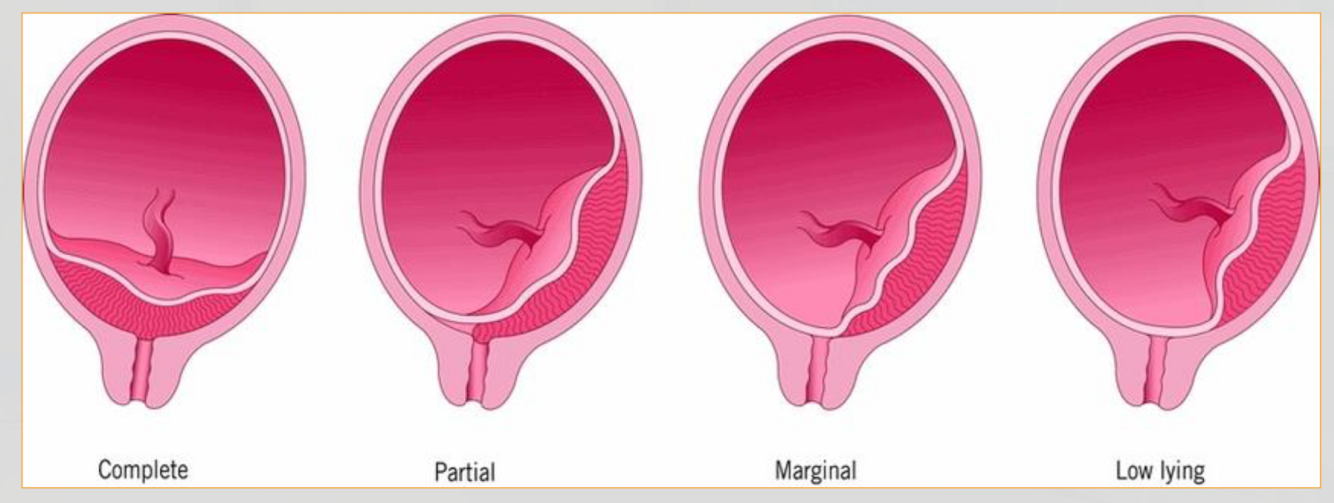 Placenta Previa: covers the cervical internal os