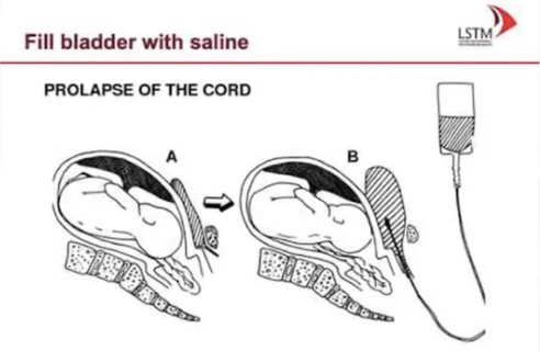 What is the initial primary management of cord prolapse?