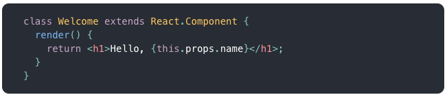 Functions. They accept arbitrary inputs (called “props”) and return React elements describing what should appear on the screen.