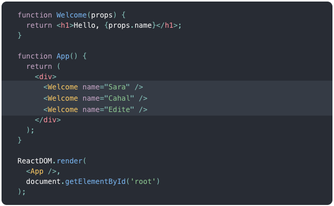 Yes. This lets us use the same component abstraction for any level of detail. For example, we can create an App component that renders Welcome many times: