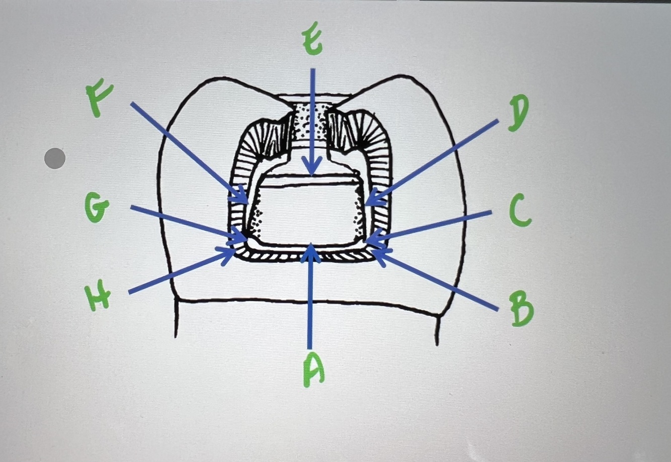 D: buccal axial line angle (w/optional retention groove)