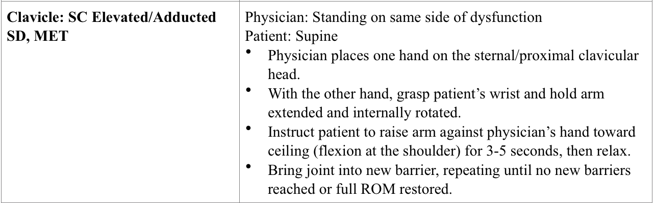 Clavicle: SC elevated/adducted SD, MET