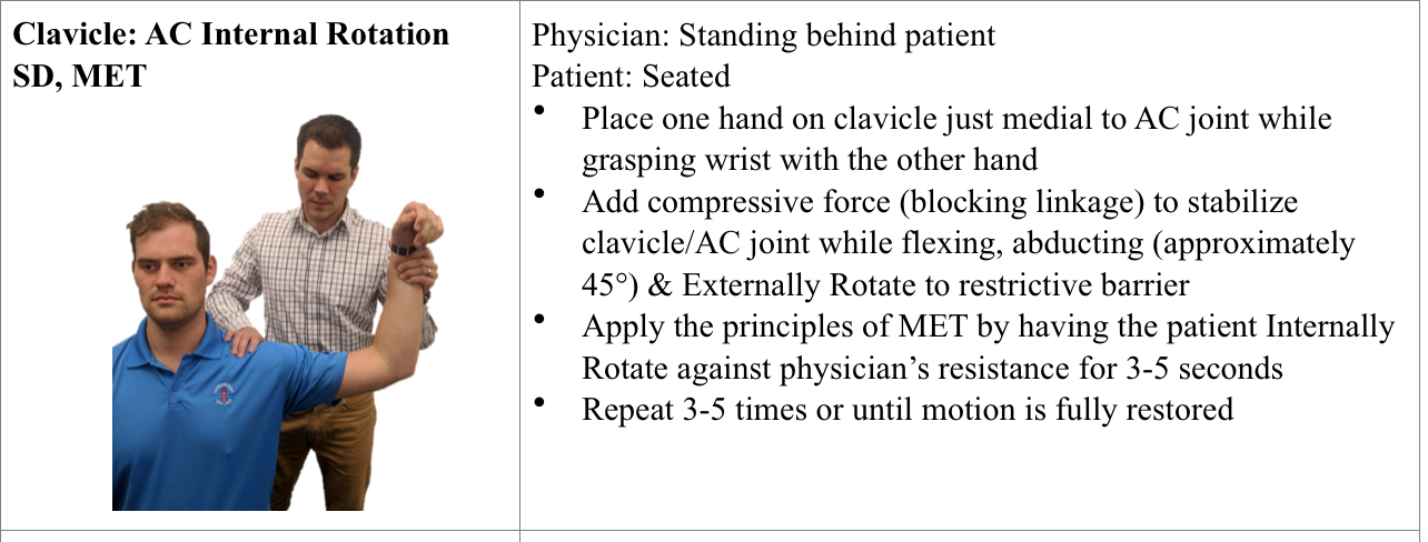 Clavicle: AC internal rotation SD, MET