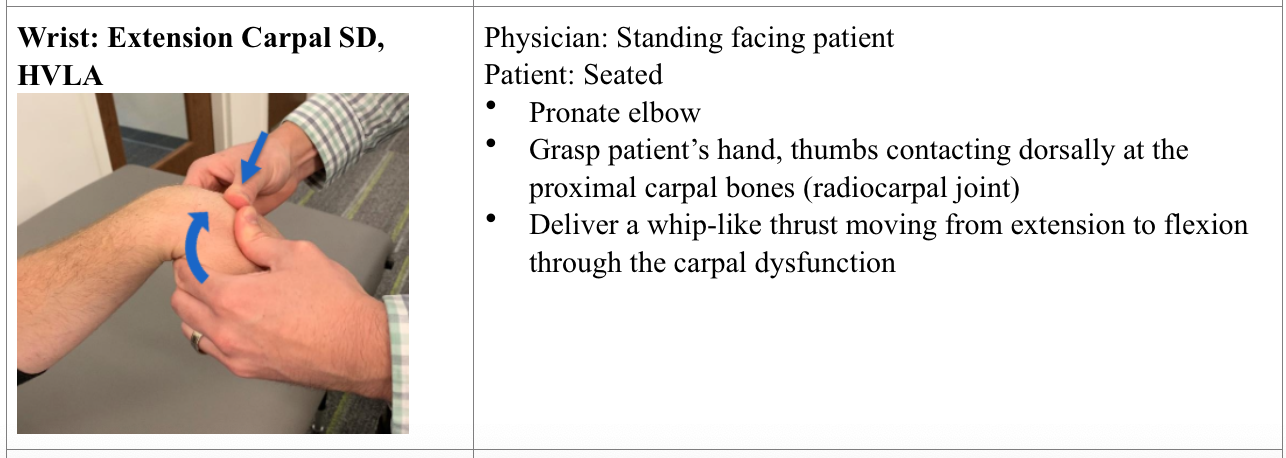 Wrist: extension carpal SD, HVLA