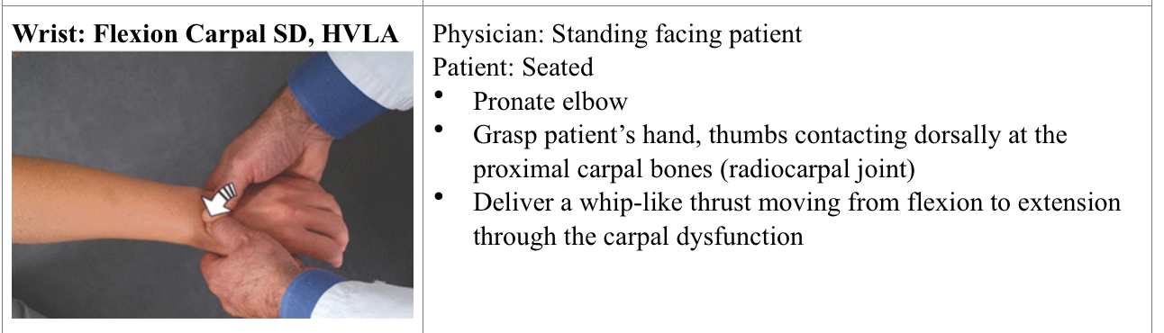 Wrist: flexion carpal SD, HVLA