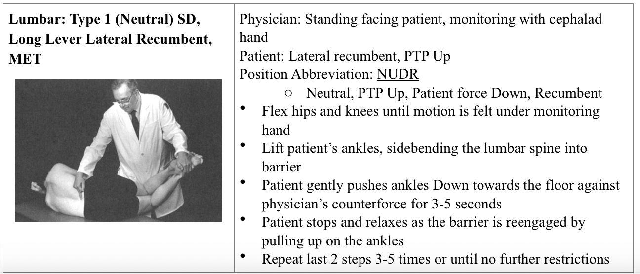 Lumbar: Type 1 (neutral) SD, long lever lateral recumbent MET