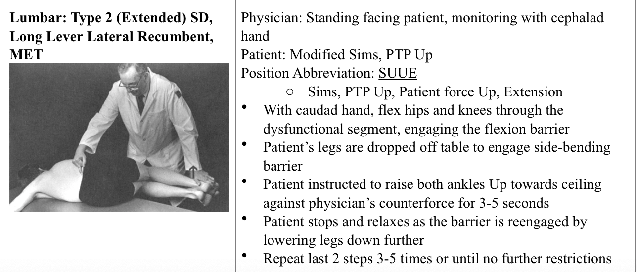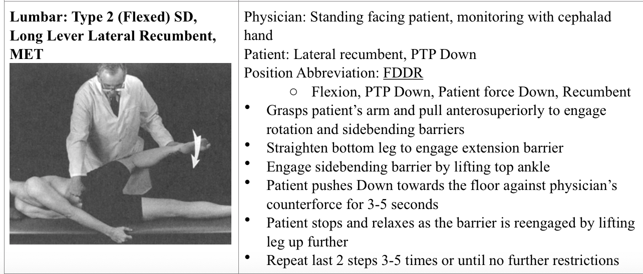 Lumbar: Type 2 (flexed) SD, long lever lateral recumbent MET