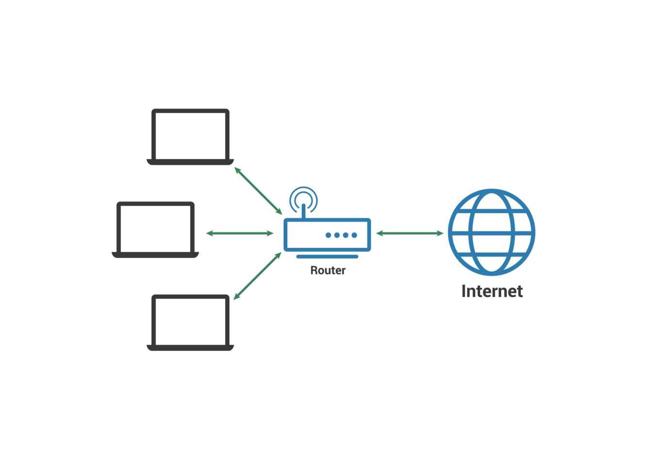 Via a router which connects to the LAN’s switch