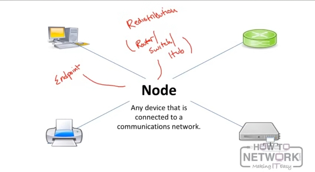 Endpoint node - It’s where the data terminates at. ( eg printer, monitor etc)