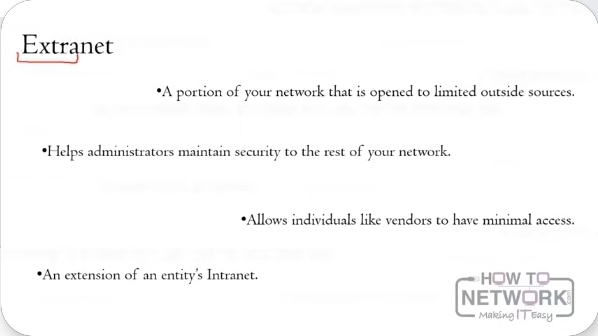 It extends an organization’s intranet to external users, providing them with access to specific information and applications without exposing the entire network.