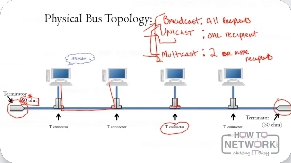 is a network design where all devices (or nodes) are connected to a single central cable, known as the “bus” or “backbone