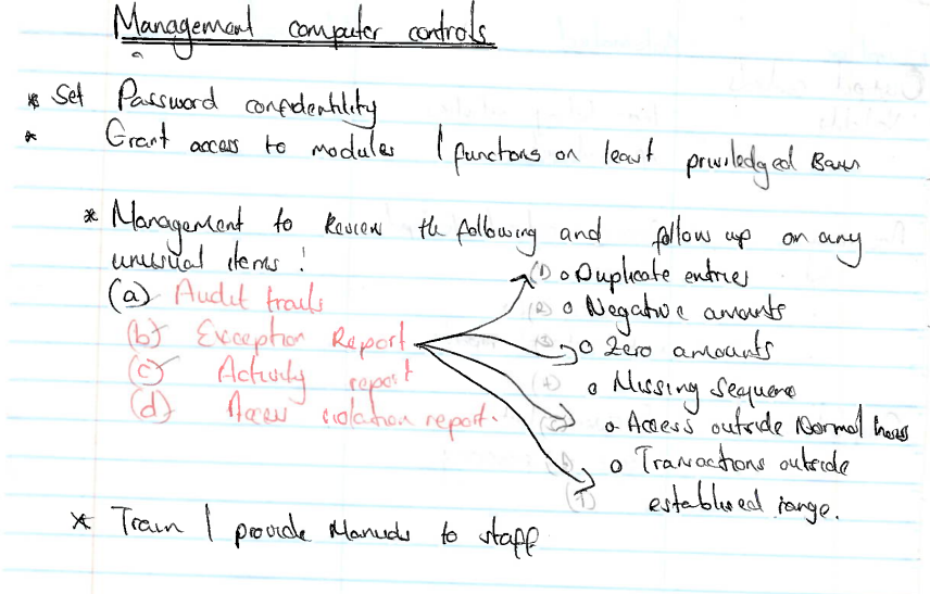 o Management to review log on regular basis and follow up