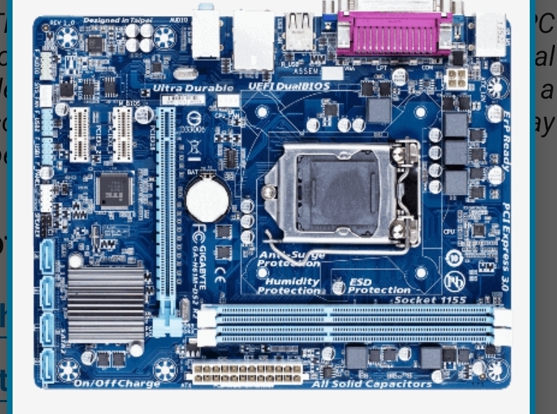 Video cards, sound cards, hard drives, optical drives, CPU, RAM sticks, USB ports, power supply etc