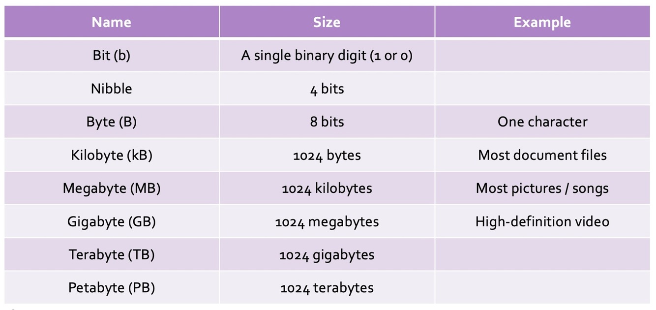 *Units are sometimes defined as 1024 not 1000 as 1024 is a power of 2 which is helpful when dealing with binary