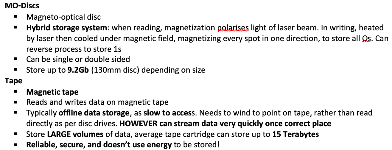 Define MO-discs and TAPE