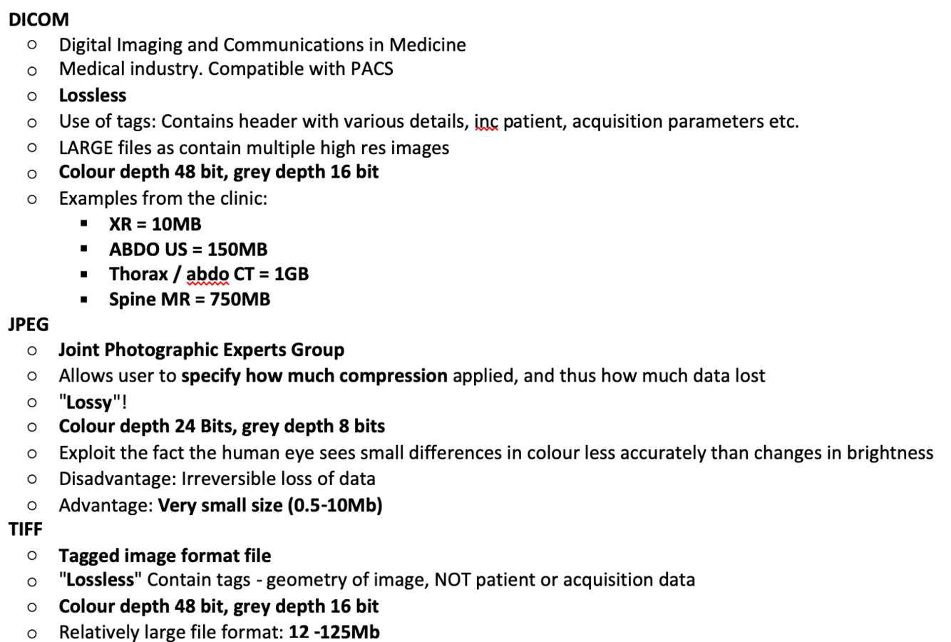 Compare DICOM, JPEG and TIFF