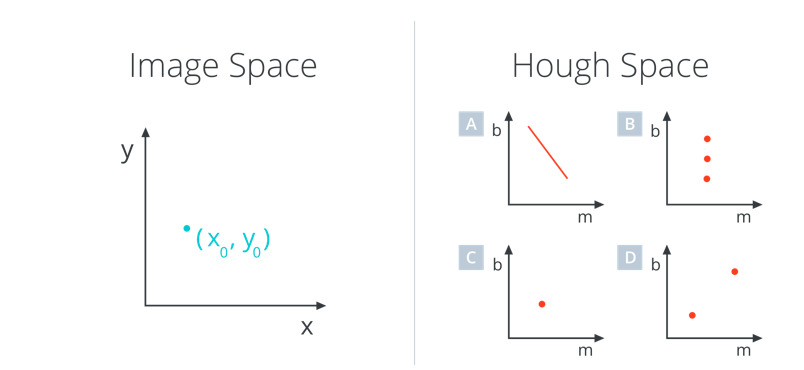 In image space, a line is plotted as x vs. y. In 1962, Paul Hough devised a method for representing lines in parameter space(the values we need to find to build a line), which we will call “Hough space” in his honor.
