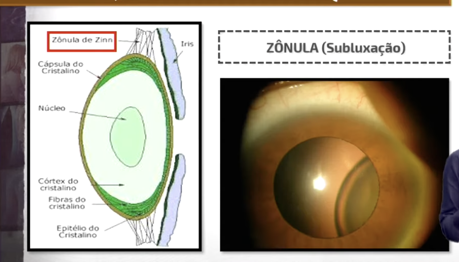 Deslocamento do cristalino, causado por Fragilidade ou ruptura da zonula
