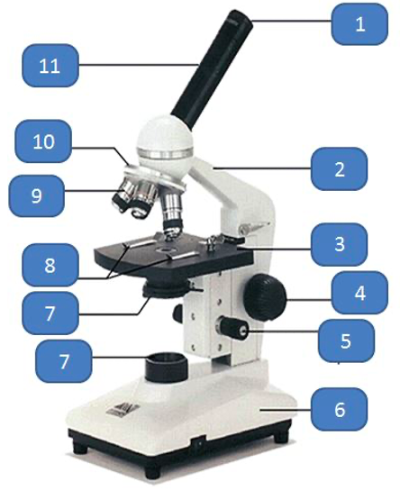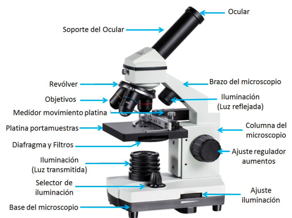 Menciona las partes del microscopio