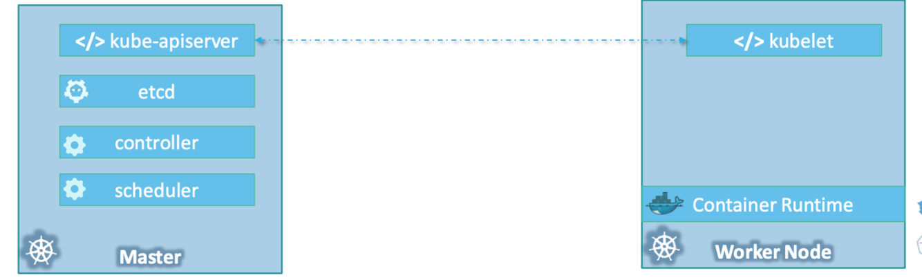 An API Server. An ETCD service. A kubelet service. A Container Runtime, Controllers and Schedulers.