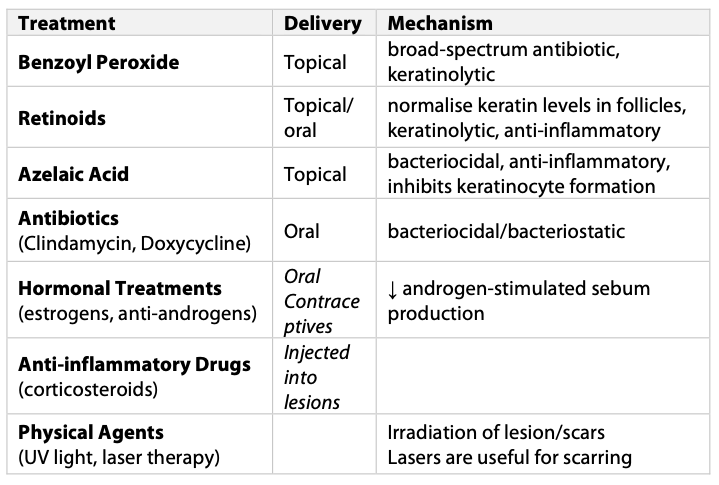 Outline treatment options for acne.