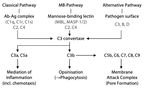 Outline the three complement pathways.