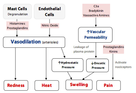 Name the five signs of acute inflammation and outline their mechanisms.