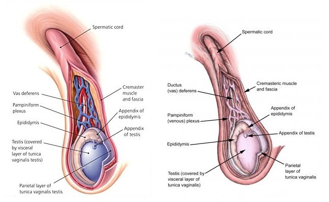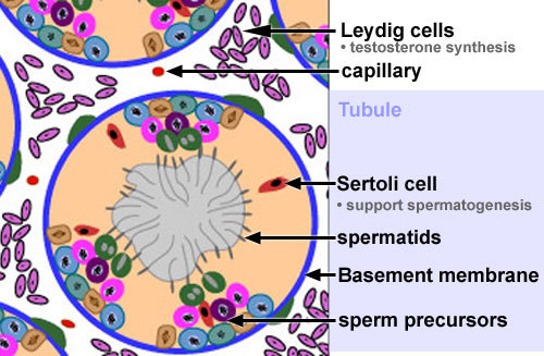Cells of the seminiferous tubules and surrounding interstitial tissue.