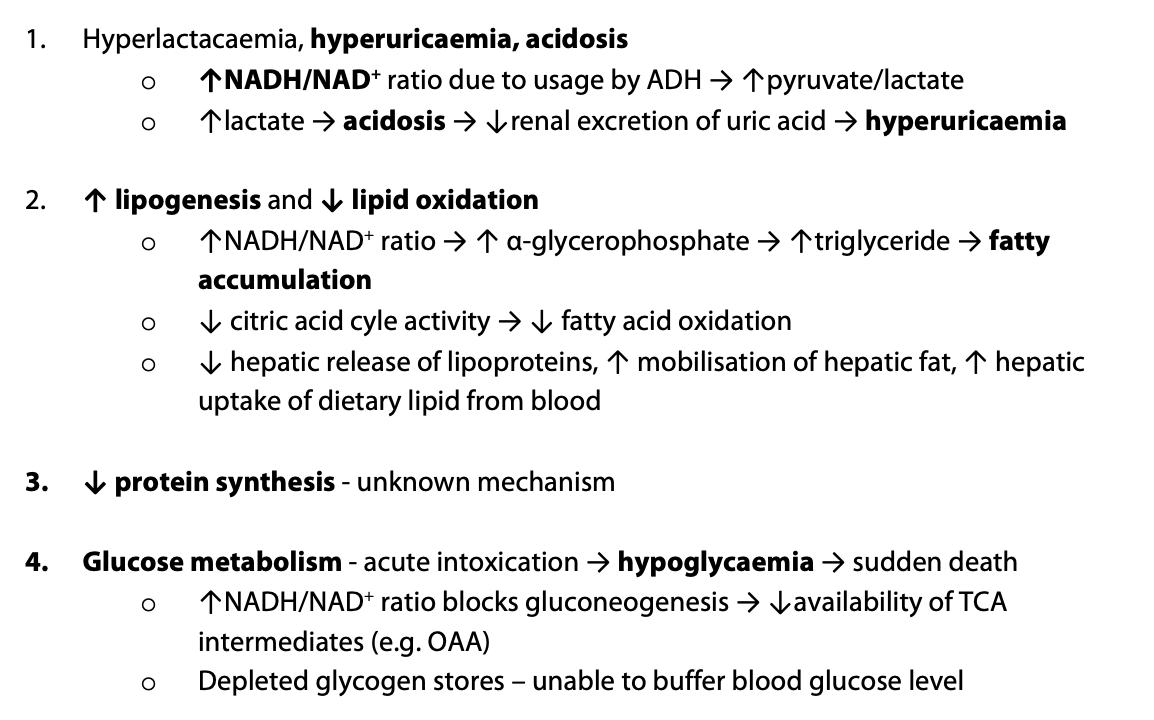 List the four main metabolic effects of alcohol.