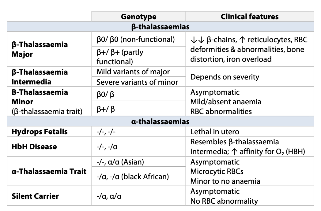 Summarise α and β- Thalassaemia.